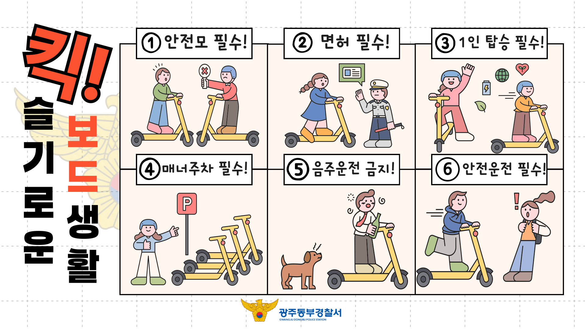 광주 동부경찰서와 함께 우리 대학 학우 여러분께 '슬기로운 킥보드 생활' 안전수칙을 안내하오니