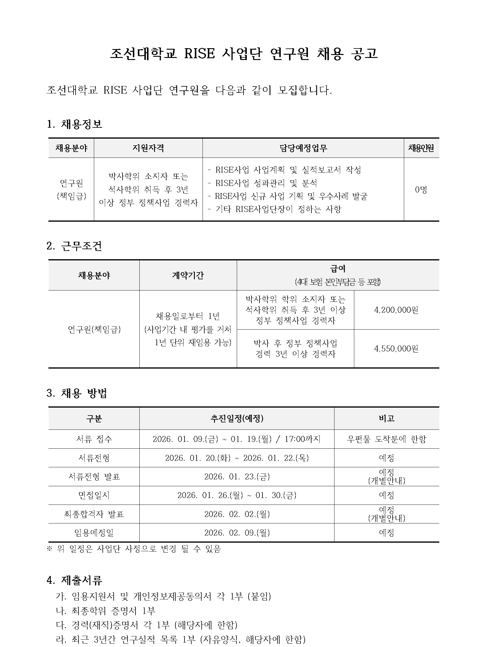 완료 [RISE사업단] 조선대학교 RISE사업단 연구원 채용 공고
