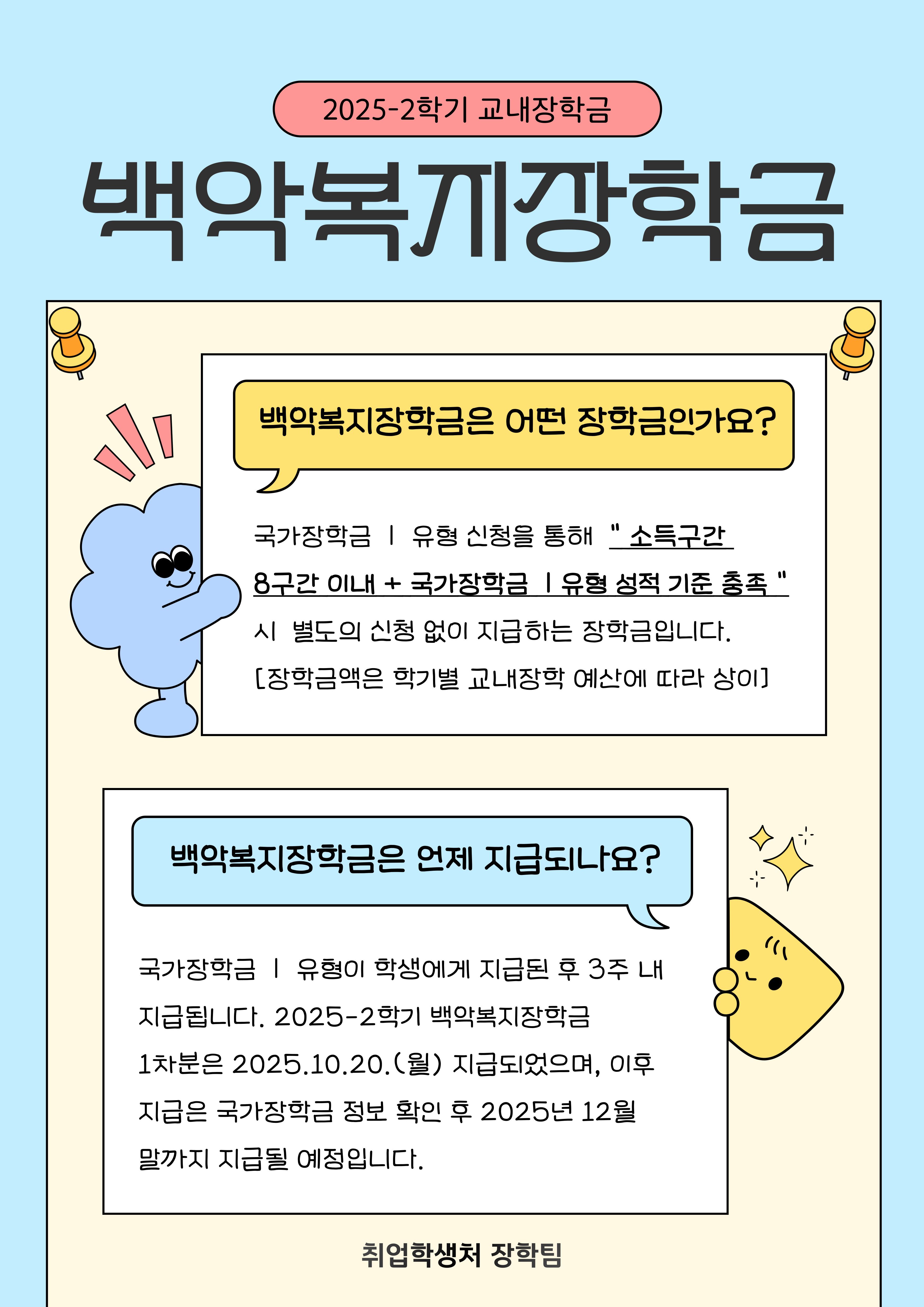 교내 백악복지장학금 지급 안내(1차분 2025. 10. 20. 지급)