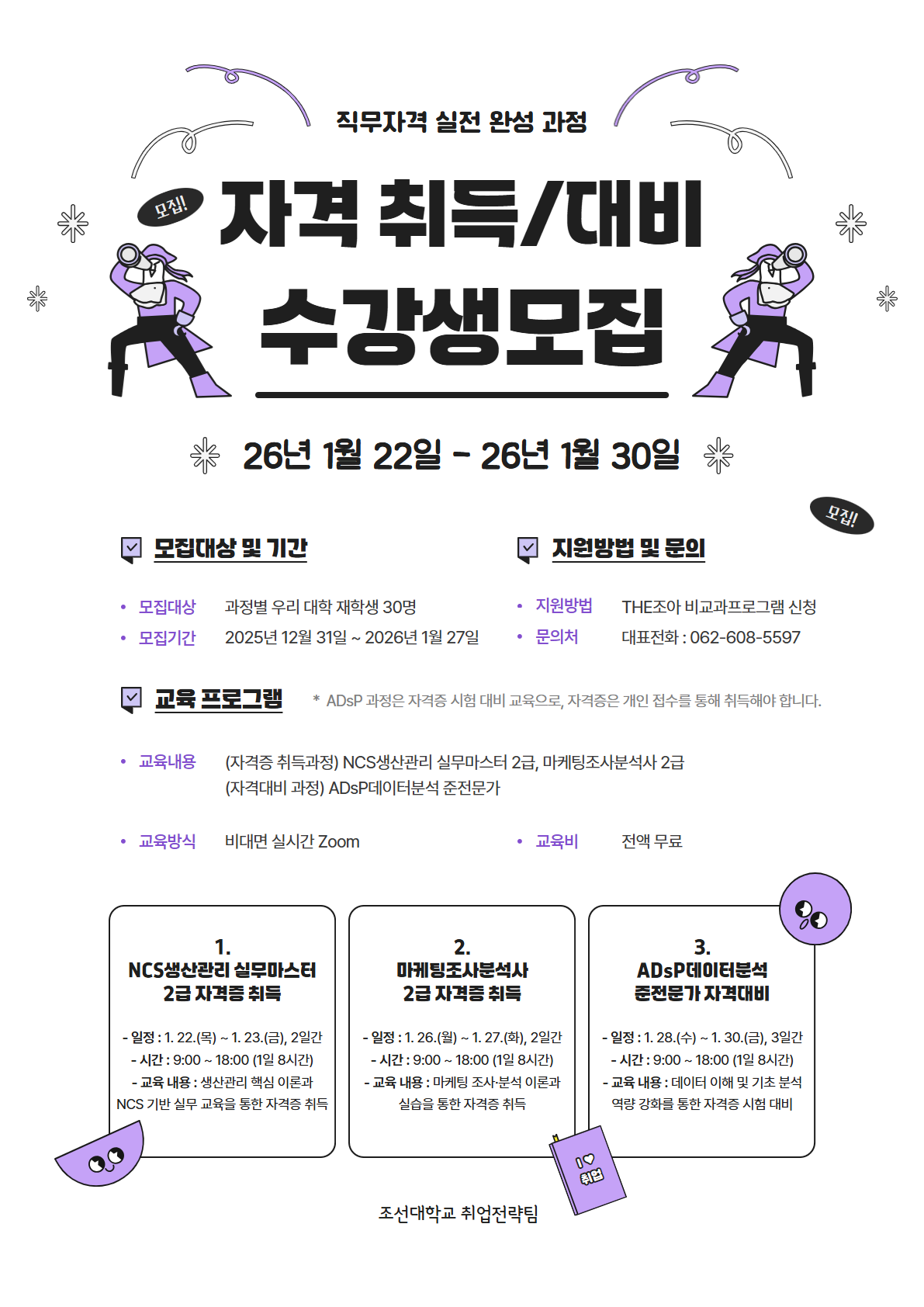 [취업전략팀] 직무자격 실전 완성 과정(자격증 취득 및 대비과정) 수강생 모집 안내