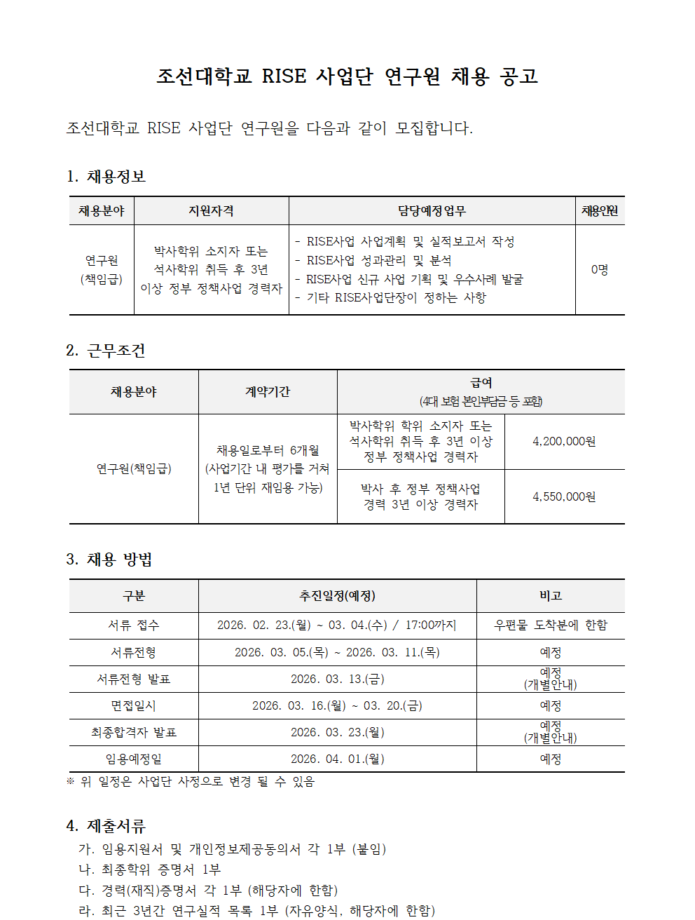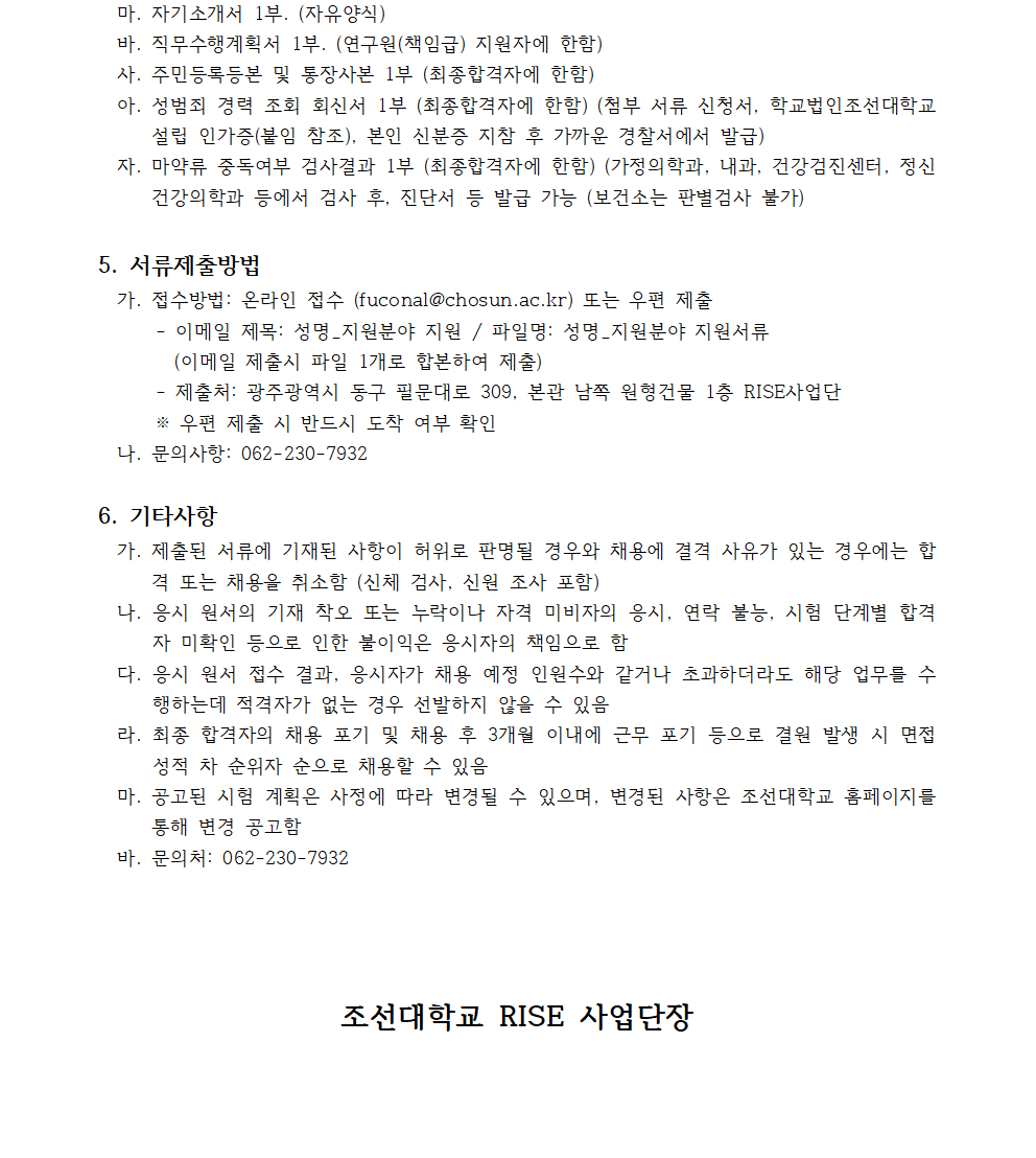 진행중 [RISE사업단] 조선대학교 RISE사업단 연구원 채용 공고